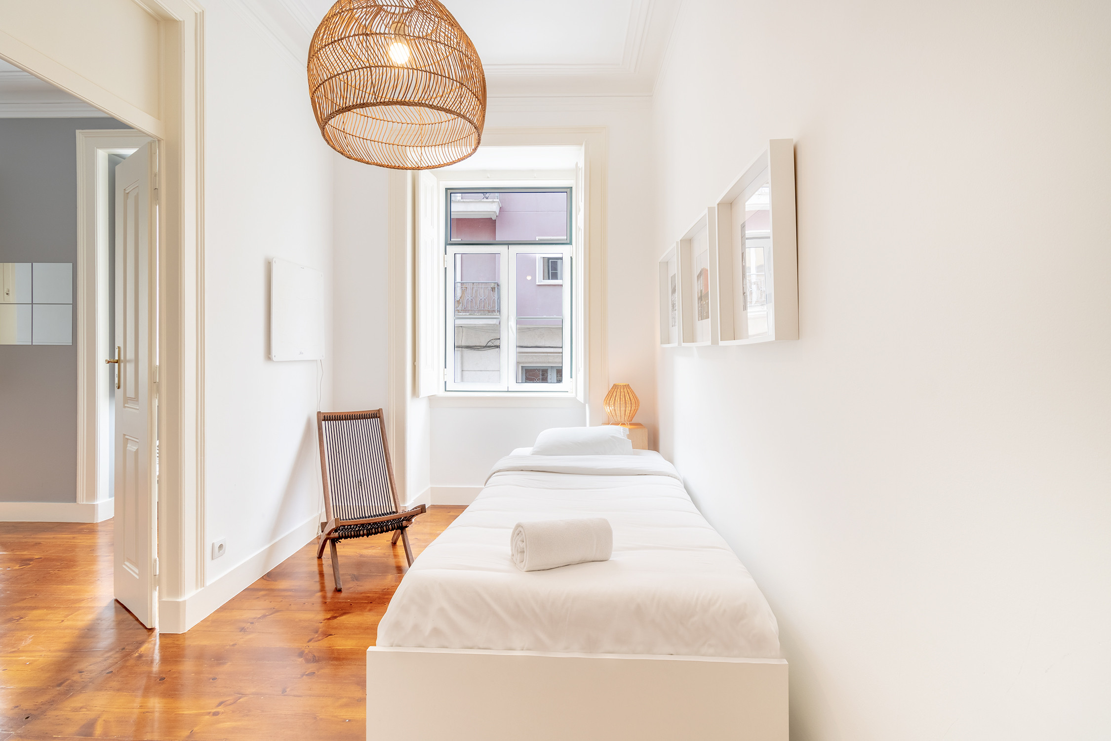 Este espaçoso apartamento gerido pela Central Hill Apartments, está localizado entre a avenida mais central e exclusiva de Lisboa – a Avenida da Liberdade e Príncipe Real, o local mais trendy para encontros de amigos, comer, e fazer compras. Está a uma curta distância de todos os principais locais a visitar em Lisboa, como a Avenida da Liberdade, o Rossio, a Baixa, o Chiado, o Príncipe Real, o Bairro Alto, o Castelo de São Jorge e o pitoresco bairro Alfama. É um local perfeito para aproveitar a vida quotidiana tradicional e a vida nocturna da cidade! Esqueça os táxis, pode ir a pé para todo o lado!O apartamento de 200 metros quadrados fica no 1º piso (equivalente a um 2º piso) de um edifício muito charmoso do início do século XIX, com tectos decorados e pisos de tábua corrida, mas sem elevador. Possui 7 quartos, uma sala de estar e jantar com uma vista fantástica sobre Lisboa, 3 casas de banho, uma cozinha equipada, e muita luz solar.Morada do Apartamento: Rua da Alegria 61, 1250-182 Lisboa, Portugal (1º piso- equivalente a um 2º piso, sem elevador)A configuração dos quartos é a seguinte:Quarto #1: 1 cama de casal + 1 cama-gavetão de solteiro (acomoda 2+1)Quarto #2: 1 cama de casal (acomoda 2)Quarto #3: 1 cama de solteiro + 1 cama-gavetão de solteiro (acomoda 1+1)Quarto #4: 1 cama de casal (acomoda 2)Quarto #5: 1 cama de casal + 2 camas-gavetão de solteiro (acomoda 2+2)Quarto #6: 1 cama de solteiro + 1 cama-gavetão de solteiro (acomoda 1+1)Quarto #7: 1 cama de beliche de casal (acomoda 2+2)Estão disponíveis 3 camas insufláveis de solteiro (acomoda 3, podem ser colocadas na sala ou nos quartos #4 e #5)Nº Total de camas: 16 camasCapacidade máxima: 22 pessoasNota(s): Este apartamento tem quartos conectados. Quarto #4 acessível via Quarto#3 e Quarto #7 acessível via Quarto #6.Preparação dos Quartos:- O apartamento só será preparado para o número de pessoas selecionadas na reserva- Camas superiores são preparadas primeiro, depois beliche, camas-gavetão, sofás-cama e camas insufláveis.- Serão preparadas camas separadas para cada hóspede até atingir o número total de camas, após isso consideraremos 2 pessoas nas camas de casal.Informação importante:- Este apartamento está localizado num edifício muito sensível onde as regras devem ser seguidas em todos os momentos e os vizinhos respeitados.- Não é permitido ruídos ou música alta durante o dia e silêncio total à noite (a partir das 22h).- Festas, fumar ou colunas de som são estritamente proibidas.- Ar condicionado ou aquecimento central não fornecidos (aquecedores portáteis e ventiladores portáteis fornecidos)- Devido à sua localização central na zona turística deverá esperar algum ruído exterior.Desfrute da total privacidade do seu próprio apartamento. Perfeito para famílias ou grupos que procuram explorar Lisboa, oferecendo uma rara combinação de localização central e amplo espaço para acomodar grupos maiores, tudo a uma curta distância das principais atracões de Lisboa.Check-in e Check-out:Check-in: a partir das 16h00Check-out: até às 11h00- Este apartamento oferece um conveniente processo de Check-in Automático (Self-Check-in). Assim que a sua reserva for confirmada, receberá instruções e procedimentos para obter o seu código de acesso e efetuar o Self-Check-in.- No dia do seu check-out, certifique-se de que sai do apartamento até às 11:00. A não saída do apartamento antes das 11:00 implica multas.- Não é possível guardar a bagagem no apartamento após o check-out. Serviço de recolha de bagagem disponível (contactar para mais informações)- A Central Hill Apartments reserva-se o direito de reter o código de acesso até que todos os procedimentos necessários sejam concluídos pelos hóspedes.- Em circunstâncias excecionais, poderá ser necessário um check-in presencial, que, se efetuado após as 20:00h, implicará a cobrança de uma taxa de check-in tardio de 30 euros. Para evitar complicações de última hora, recomendamos vivamente a conclusão de todos os procedimentos com antecedência.Hóspedes Extras:Não é permitido ter mais hóspedes do que os selecionados na sua reserva. Caso haja mais hóspedes poderá ser aplicada uma taxa de hóspede extra (35€ por pessoa por noite) - contacte-nos para autorização e confirmação do valor da taxa de hóspede extra.Por favor, reveja e concorde com as informações acima antes de reservar, e se precisar de ajuda para selecionar um apartamento com acesso mais fácil, um elevador, ou numa rua mais calma, não hesite em contactar-nos ou visitar o site da Central Hill Apartments, onde pode encontrar mais de 30 apartamentos nas melhores localizações da zona turística de Lisboa.Será um prazer receber-vos,Central Hill Apartments26 comentários