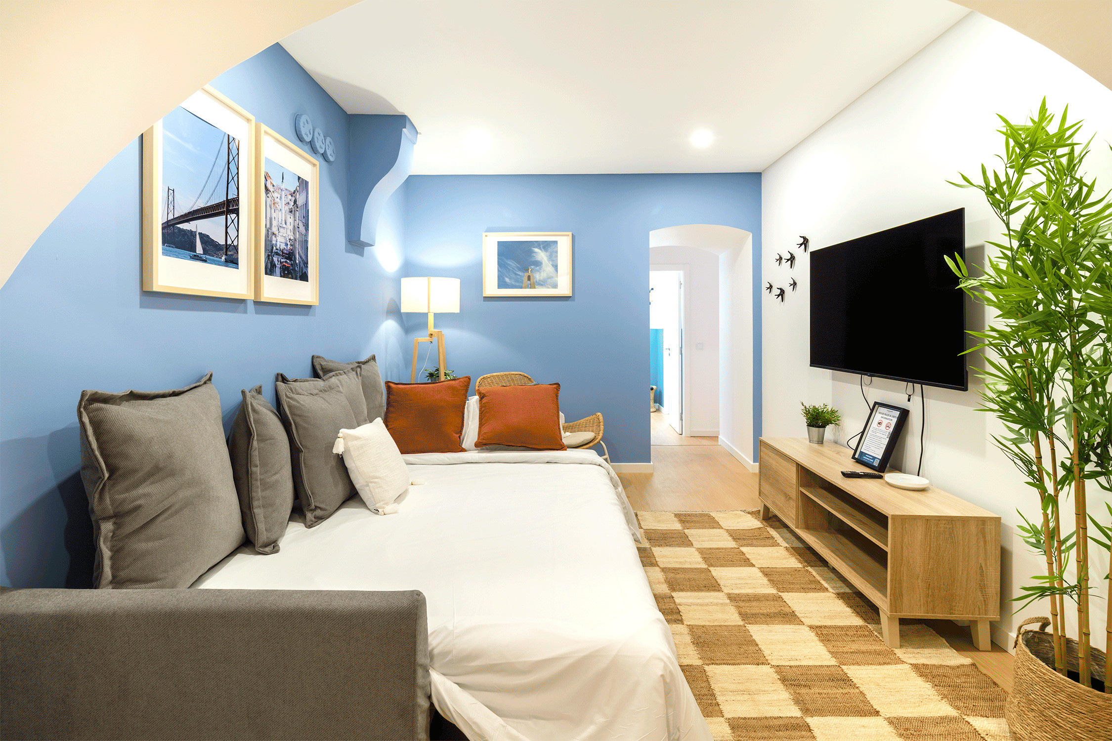This 4-bedroom apartment with a view managed by Central Hill Apartments, is located in the most traditional neighborhood of Lisbon, Alfama. Here you are within walking distance from all the main places to visit in Lisbon such as Rossio, Chiado, Bairro Alto, and the City Castel. Also, the famous tram number 28 stops 100 meters from your door. Located next to the Lisbon Cathedral, staying in this apartment is to breathe the true and authentic Lisbon. One of the best features of this apartment is the beautiful view over the Tejo River. From there you can even see bridge “Ponte 25 de Abril” and the Cristo Rei.